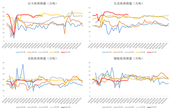 截至2025年6月19日,纸浆系成品纸累计总销量2057万吨,同比+1%。