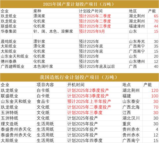 而国内纸厂投产计划更多,主要为白卡纸和文化纸。