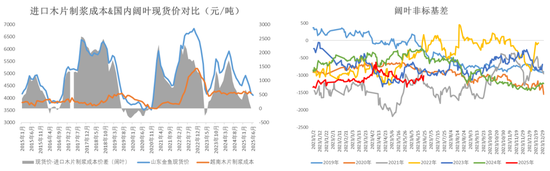 仅从外盘长协报价考虑,阔叶报价仍有下调可能,且市场预期也偏悲观,因此进口木片制浆成本线存在打破可能,若按照国产木片制浆成本,算上去年最低的阔叶基差,盘面底部估值可能在5000元附近。